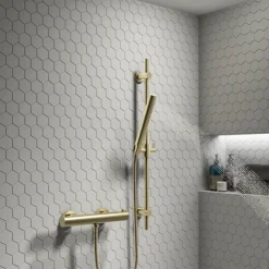 Arezzo Brushed Brass Industrial Style Shower System With Concealed Valve, Head + Handset
