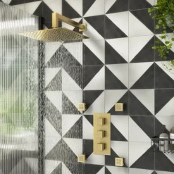 Arezzo Brushed Brass Square Shower System (Valve With Fixed Shower Head + 4 Body Jets)