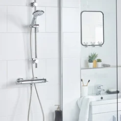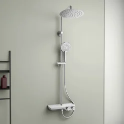 A classic combination of an exposed valve with an adjustable shower head makes this Aquatique shower suitable for a range of different bathroom schemes, whether classic or contemporary. Featuring Aqualisa’s renowned bi-metallic thermostatic technology, the Aquatique shower valve reacts immediately to changes in water flow and temperature, whilst a maximum temperature limit and automatic shut off feature ensures safer showering.