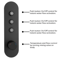 (1) Arezzo Matt Black Industrial Style 1-Touch Push Button Smart Control Concealed Shower Valve (3 Outlet)