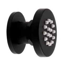 - Circular handle with a tactile knurled grip