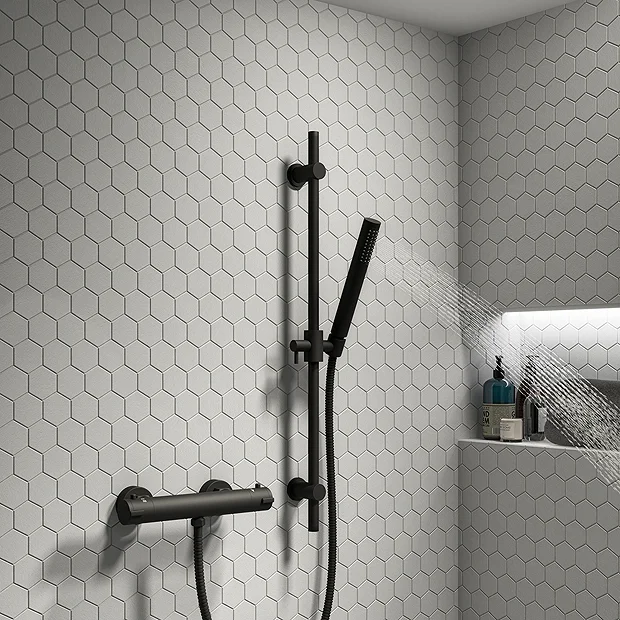 Bar valve comes with a matching minimalist rounded design slider, designed and manufactured using the finest methods and materials to ensure a high quality product. With it’s contemporary styling the Arezzo matt black pencil style shower handset shower will naturally blend in to and compliment any modern bathroom. The practical slider bracket allows you to move the head up and down with ease.
