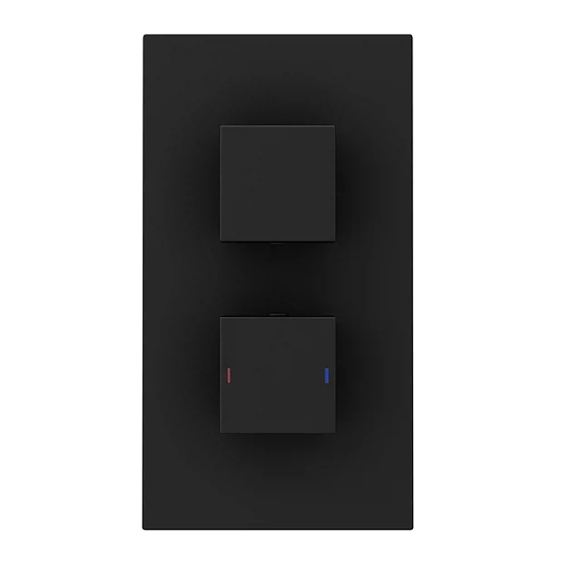 The eye-catching matt black Arezzo square shower system features a concealed thermostatic shower valve with stylish square handles, wall mounted shower head and slimline waterfall bath filler spout brings substantial elegance to the modern bathroom. This stylish concealed thermostatic shower system offers thermostatic showering and comes with a built-in diverter to switch between two different outlets.