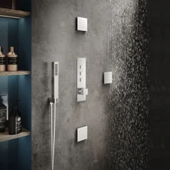 Hudson Reed Ignite Square Slimline Thermostatic Shower Package (Fixed Head, Handset + 3 Body Jets)