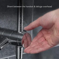 - Thermostatic control maintains a safe temperature whilst showering, even when there is a decline in water pressure