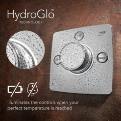 - Innovative Mira HydroGlo technology illuminates the controls when your perfect temperature is reached