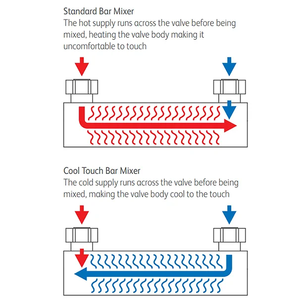 - Thermostatic: anti-scald protection